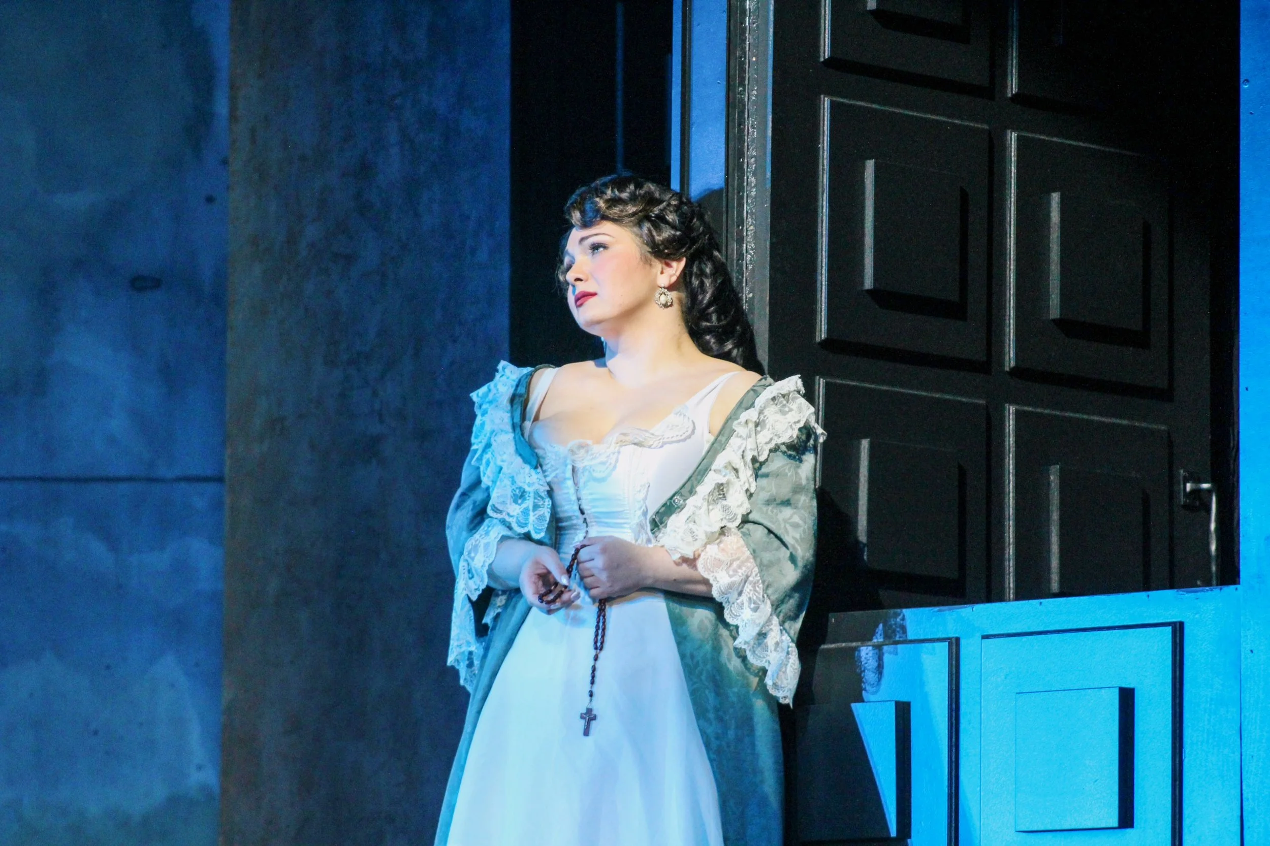 “Soprano Johanna Will portrayed Donna Elvira. She wields her attention-commanding voice with emotion and finesse. She sang Donna Elvira’s signature Aria “Mi tradi quell’alma ingrata” in Act 2 with grace and beauty.’